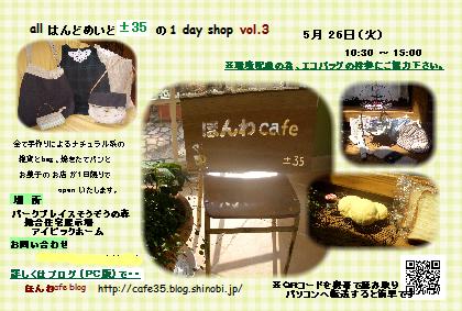 allハンドメイドの±35です。年に数回 1 day shop を開催しています。
